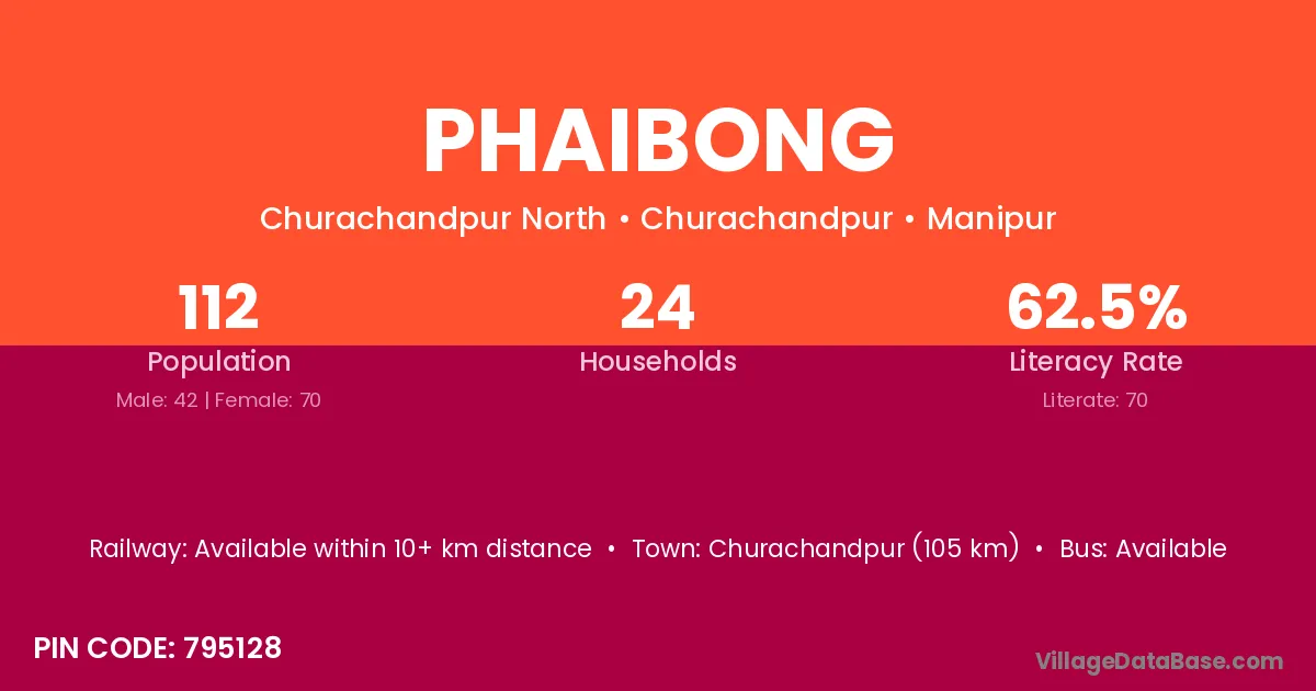 Phaibong village has a total population of 112 people, of which 42 are males and 70 are females.