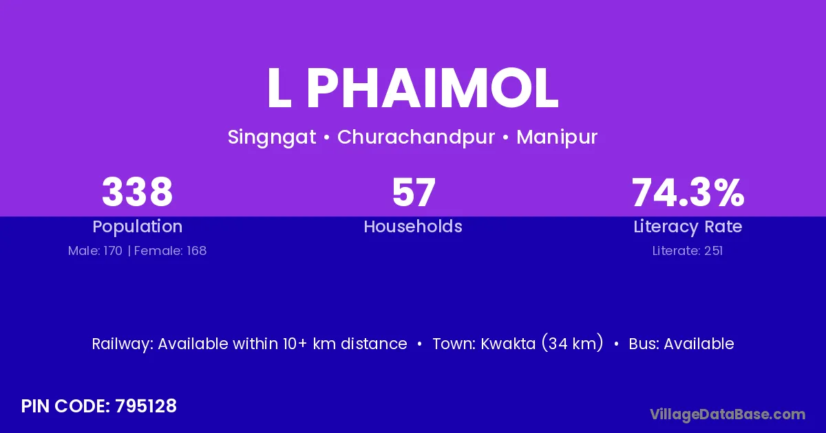 L Phaimol village has a total population of 338 people, of which 170 are males and 168 are females.