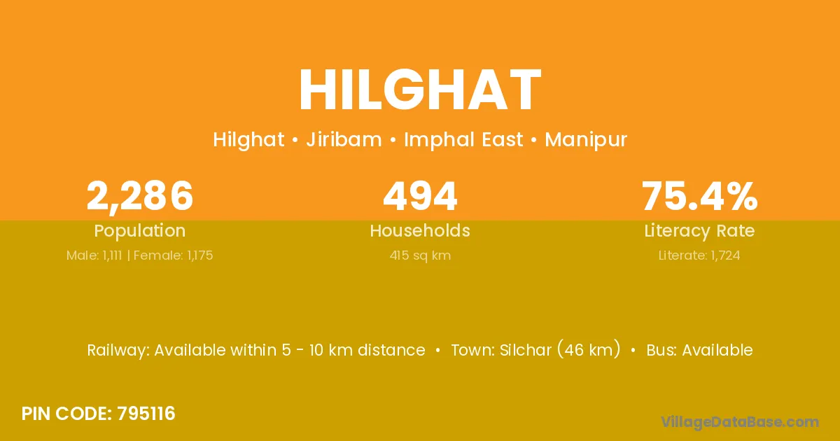 Silchar (46 km) is the nearest town to Hilghat village for major economic activities and is located approximately 46 km away.