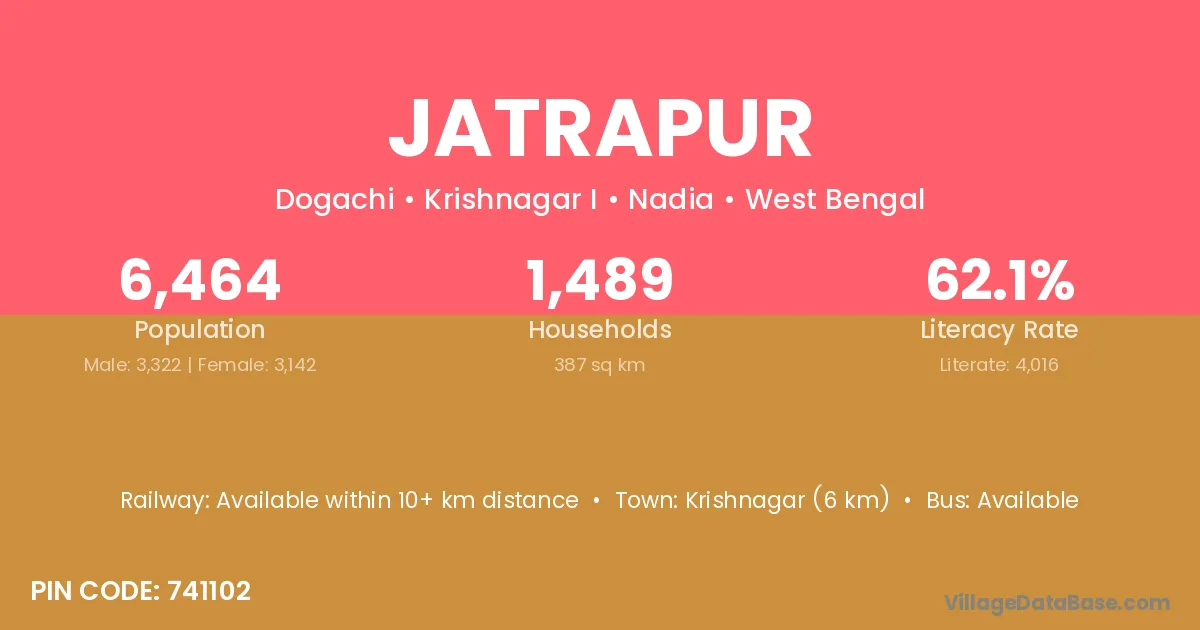 Jiribam Mc (35 km) is the nearest town to Jatrapur village for major economic activities and is located approximately 35 km away.