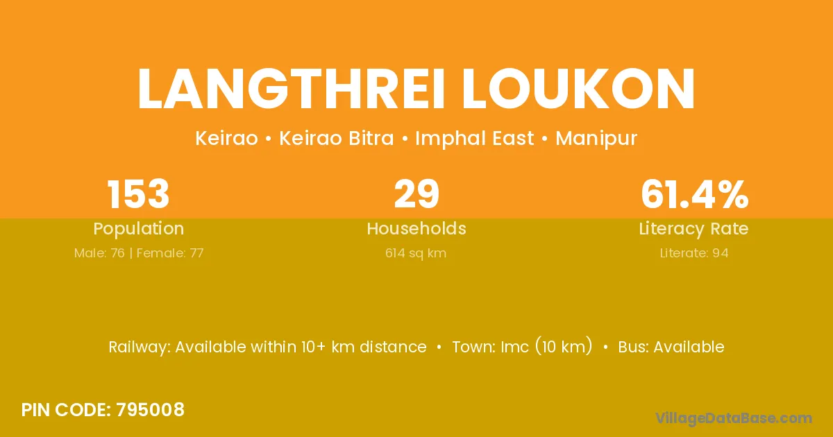 Langthrei Loukon village has a total population of 153 people, of which 76 are males and 77 are females.