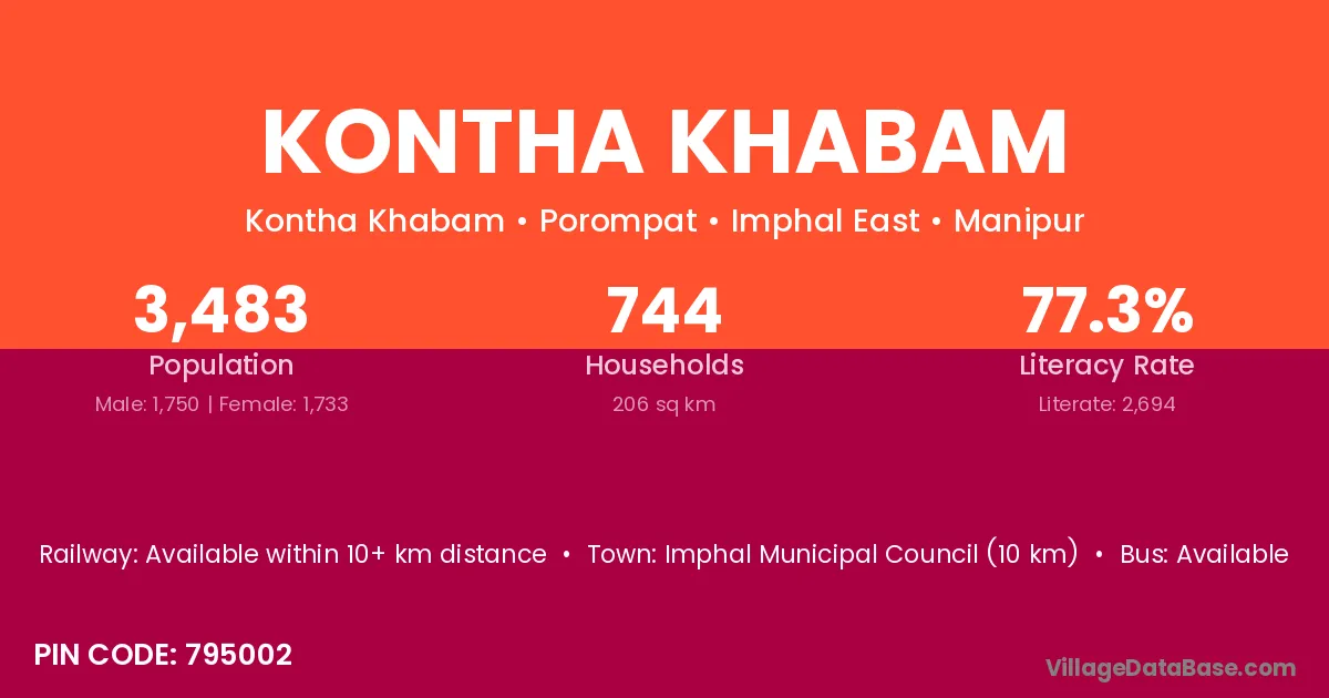 Imphal Municipal Council (10 km) is the nearest town to Kontha Khabam village for major economic activities and is located approximately 10 km away.