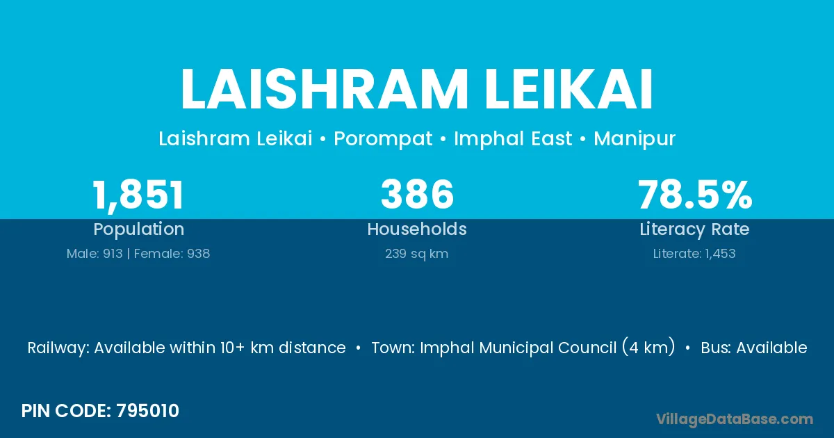 According to Census 2011 information, the village code of Laishram Leikai village is 795010.