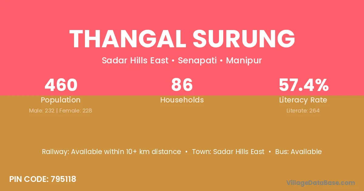 Thangal Surung village has a total population of 663 people, of which 345 are males and 318 are females.