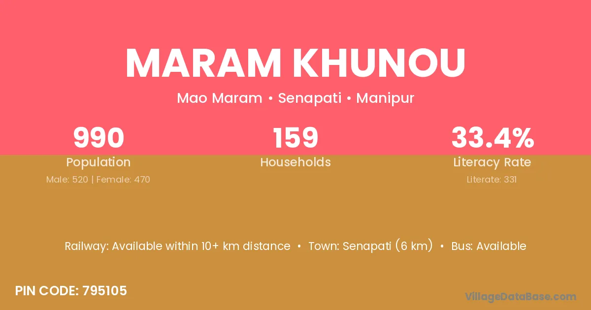 Maram Khunou village has a total population of 990 people, of which 520 are males and 470 are females.