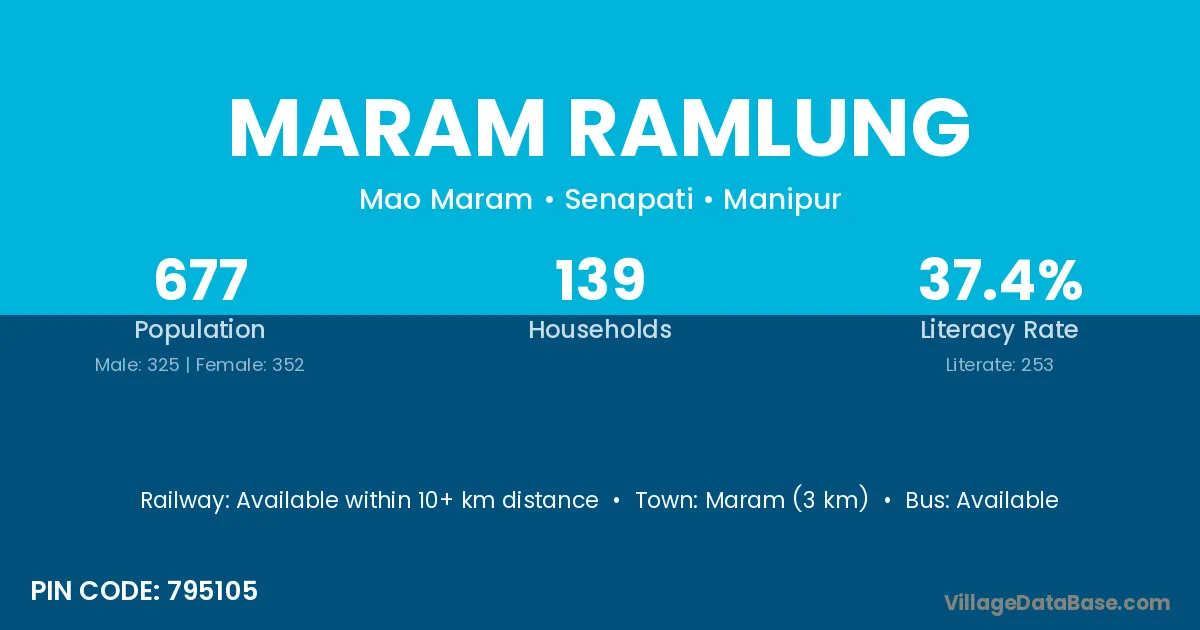 Maram (3 km) is the nearest town to Maram Ramlung village for major economic activities and is located approximately 3 km away.