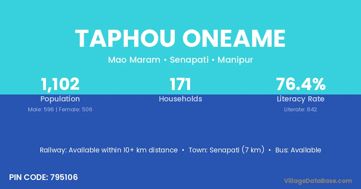 Senapati (7 km) is the nearest town to Taphou Oneame village for major economic activities and is located approximately 7 km away.