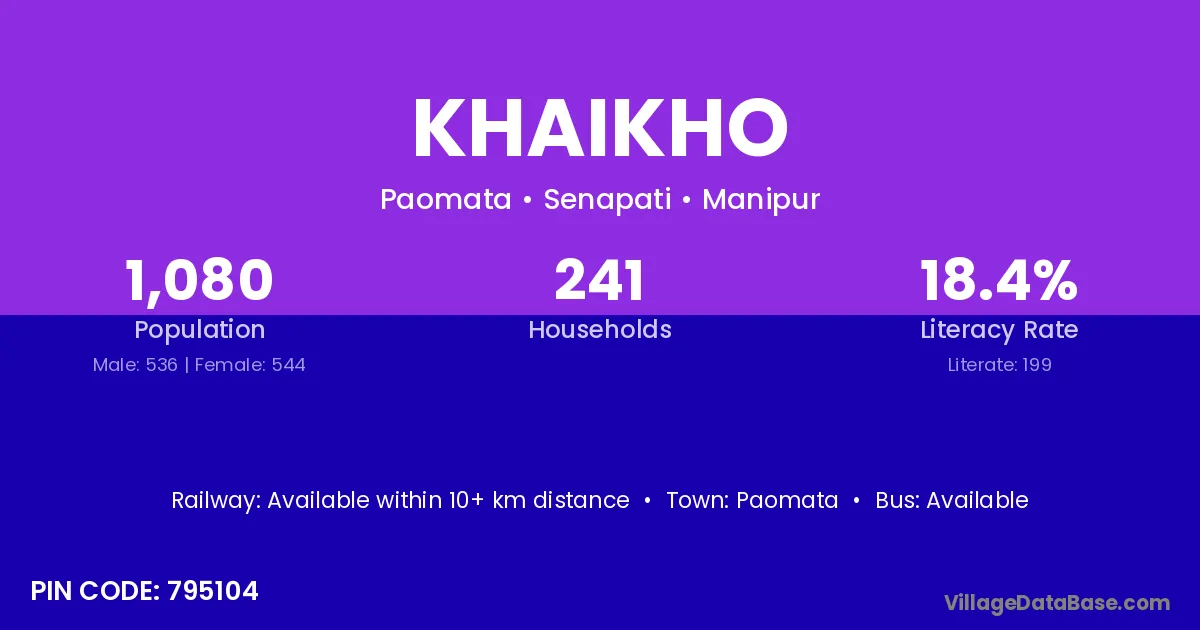According to Census 2011 information, the village code of Khaikho village is 795104.