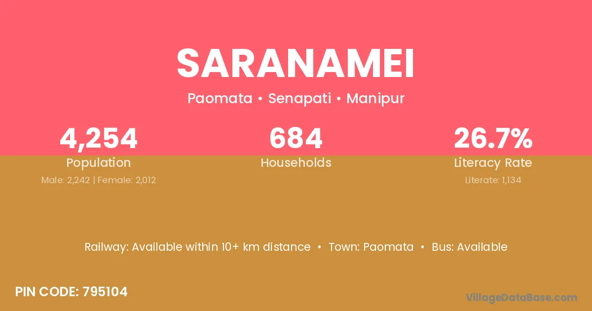 According to Census 2011 information, the village code of Saranamei village is 795104.