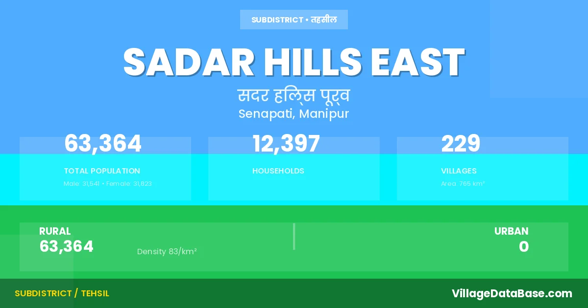 Sadar Hills East is a town and Subdivision in the Senapati district of the Manipur. In India, a Subdivision is a subdivision of a district responsible for the administration and revenue collection of a specific area within the district. Subdivisions play a crucial role in the local governance structure, contributing significantly to the development and administration of their communities.