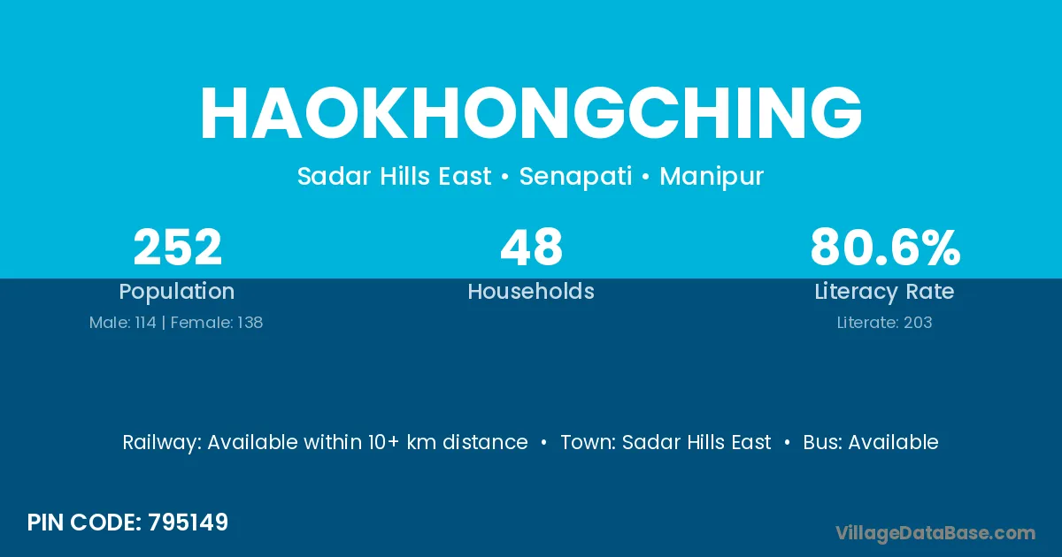 Sadar Hills East is the nearest town to Haokhongching village for major economic activities