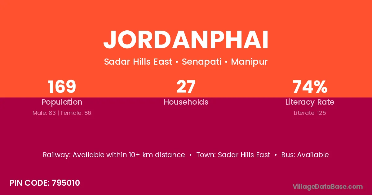 The literacy rate of Jordanphai village is 73.96%. Male literacy stands at 78.31% and female literacy at 69.77%.