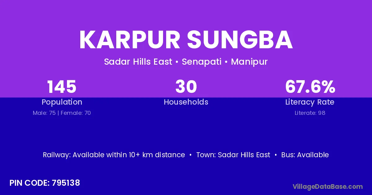 Karpur Sungba village has a total population of 145 people, of which 75 are males and 70 are females.