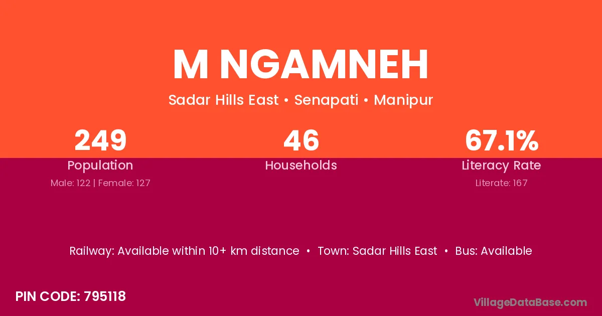 M Ngamneh village has a total population of 249 people, of which 122 are males and 127 are females.