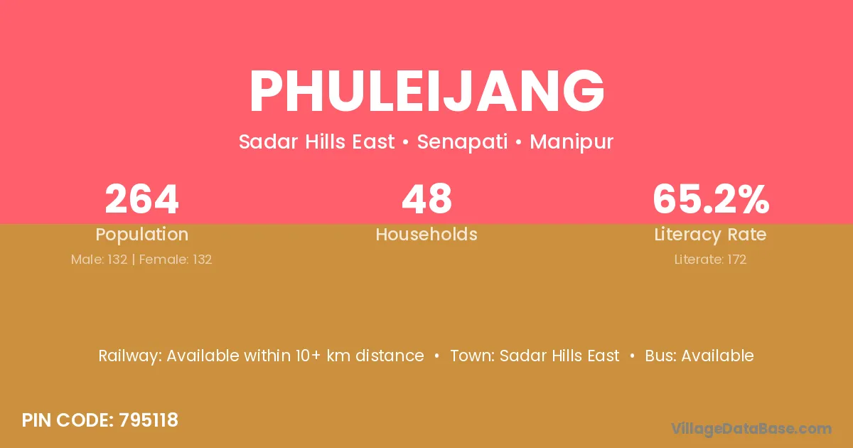 Phuleijang village has a total population of 264 people, of which 132 are males and 132 are females.