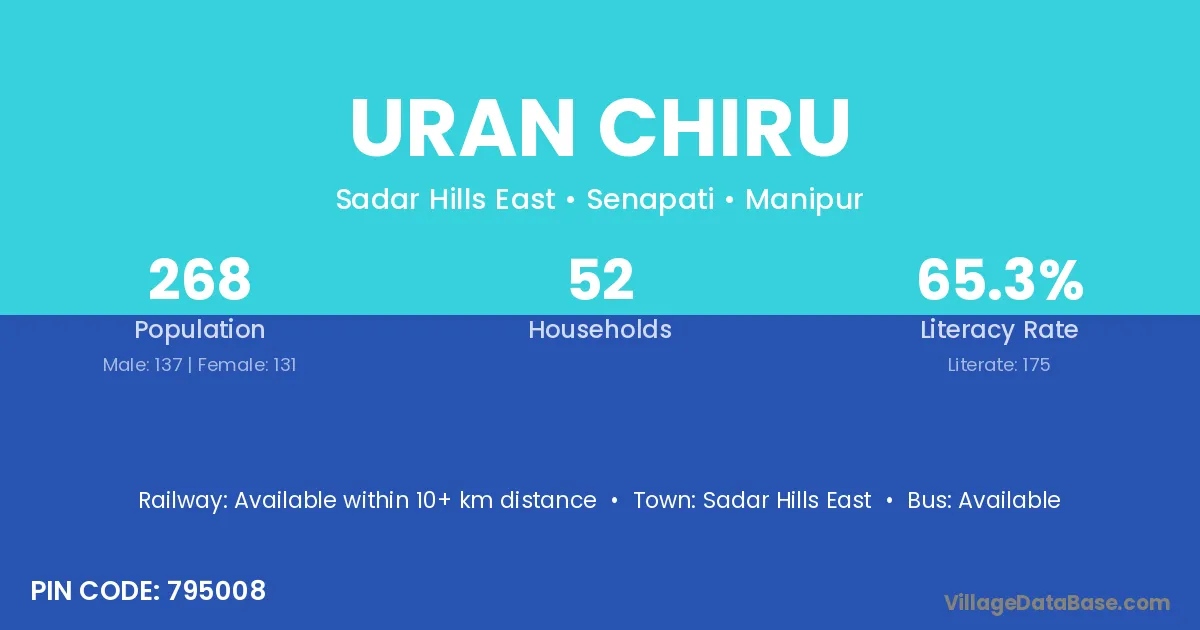 Uran Chiru village has a total population of 268 people, of which 137 are males and 131 are females.