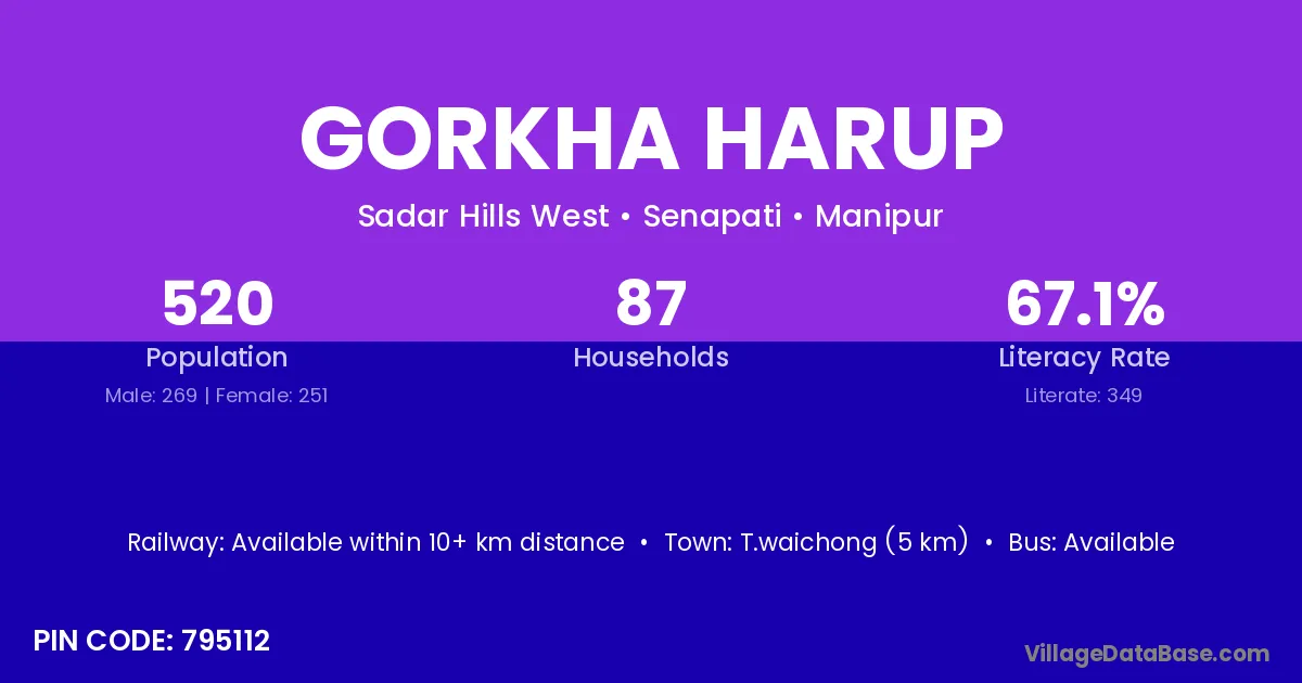 Gorkha Harup village is located in the Sadar Hills West Subdivision of the Senapati district in Manipur .