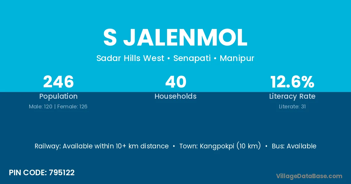 Kangpokpi (10 km) is the nearest town to S Jalenmol village for major economic activities and is located approximately 10 km away.