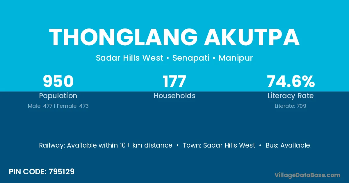 Thonglang Akutpa village has a total population of 950 people, of which 477 are males and 473 are females.