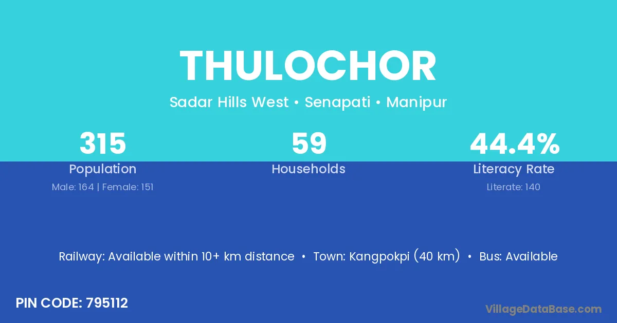 Kangpokpi (40 km) is the nearest town to Thulochor village for major economic activities and is located approximately 40 km away.