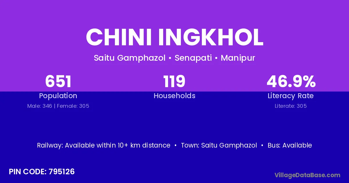 Chini Ingkhol village has a total population of 651 people, of which 346 are males and 305 are females.