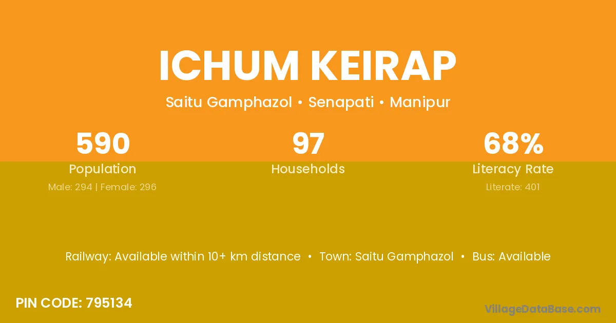 Ichum Keirap village has a total population of 590 people, of which 294 are males and 296 are females.