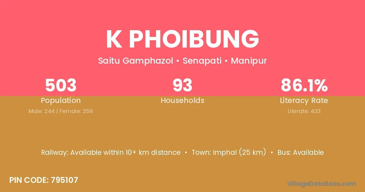 K Phoibung village has a total population of 503 people, of which 244 are males and 259 are females.