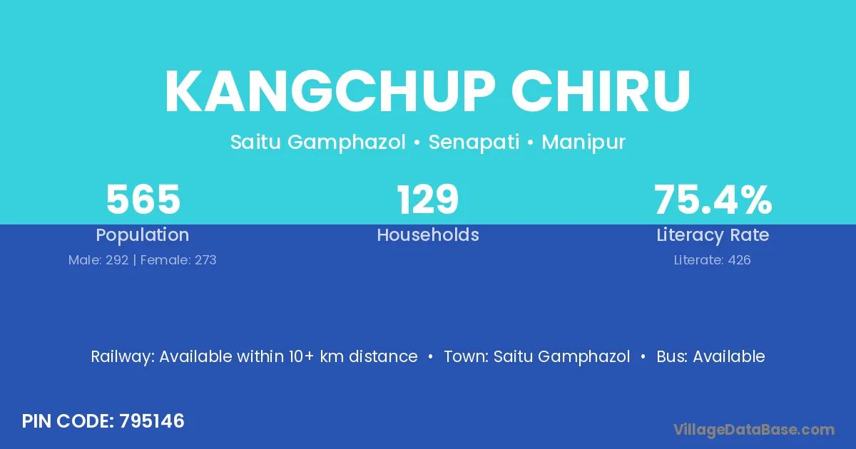 Kangchup Chiru village has a total population of 565 people, of which 292 are males and 273 are females.