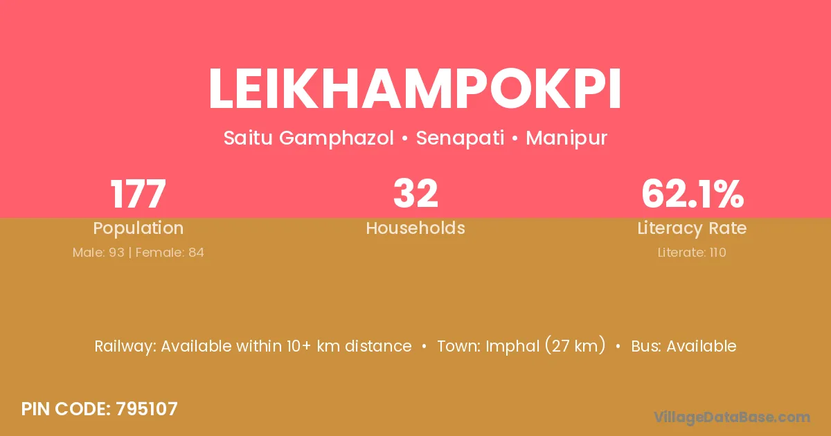 Leikhampokpi village has a total population of 177 people, of which 93 are males and 84 are females.