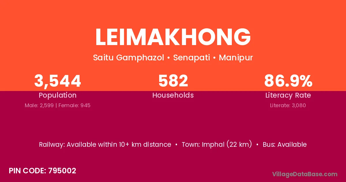 Imphal (22 km) is the nearest town to Leimakhong village for major economic activities and is located approximately 22 km away.