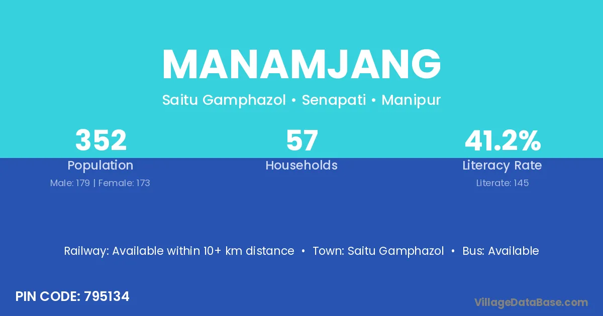 Manamjang village has a total population of 352 people, of which 179 are males and 173 are females.
