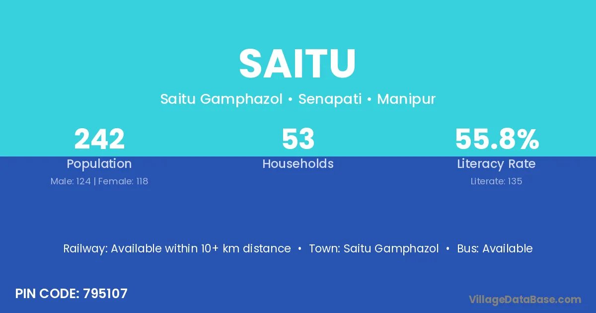 Saitu village has a total population of 242 people, of which 124 are males and 118 are females.