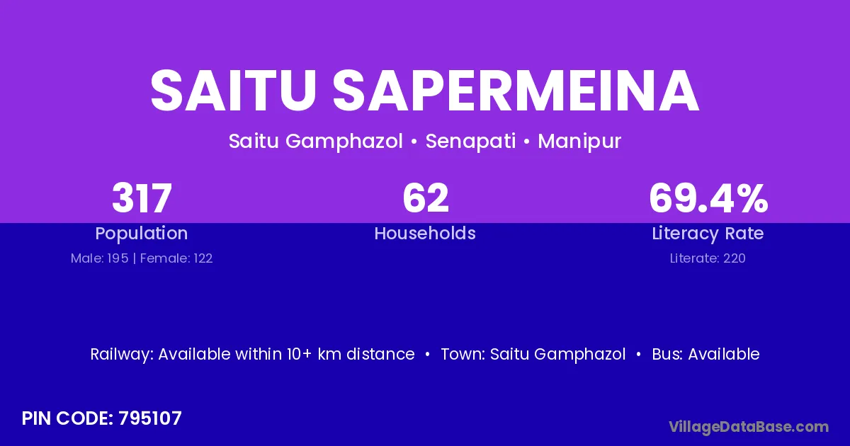 Saitu Sapermeina village has a total population of 317 people, of which 195 are males and 122 are females.