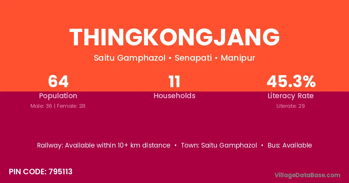 Thingkongjang village has a total population of 64 people, of which 36 are males and 28 are females.
