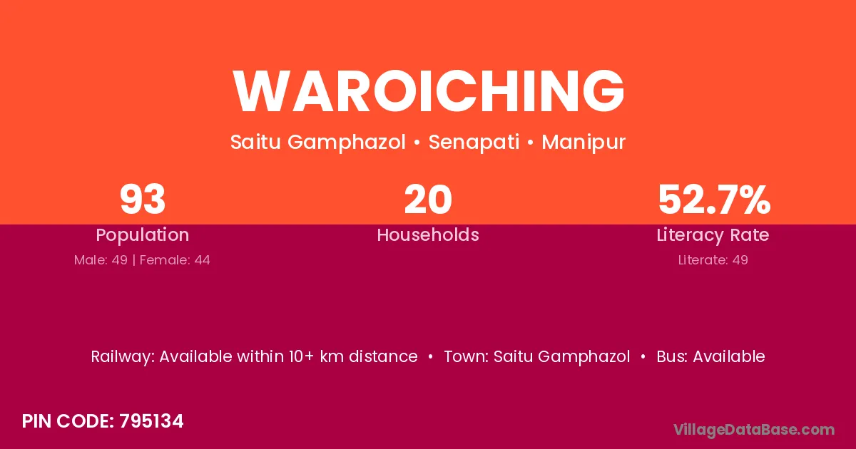 Waroiching village has a total population of 93 people, of which 49 are males and 44 are females.