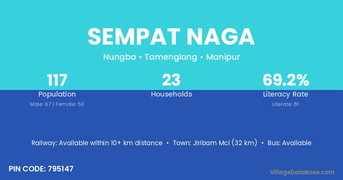Jiribam Mcl (32 km) is the nearest town to Sempat Naga village for major economic activities and is located approximately 32 km away.