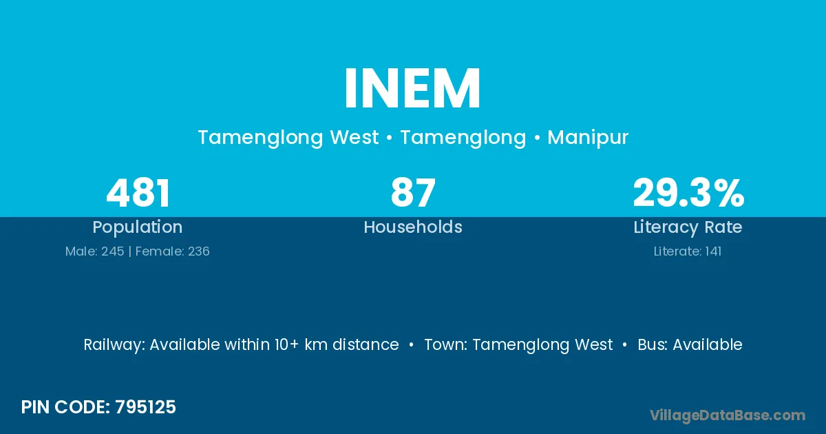 Tamenglong West is the nearest town to Inem village for major economic activities