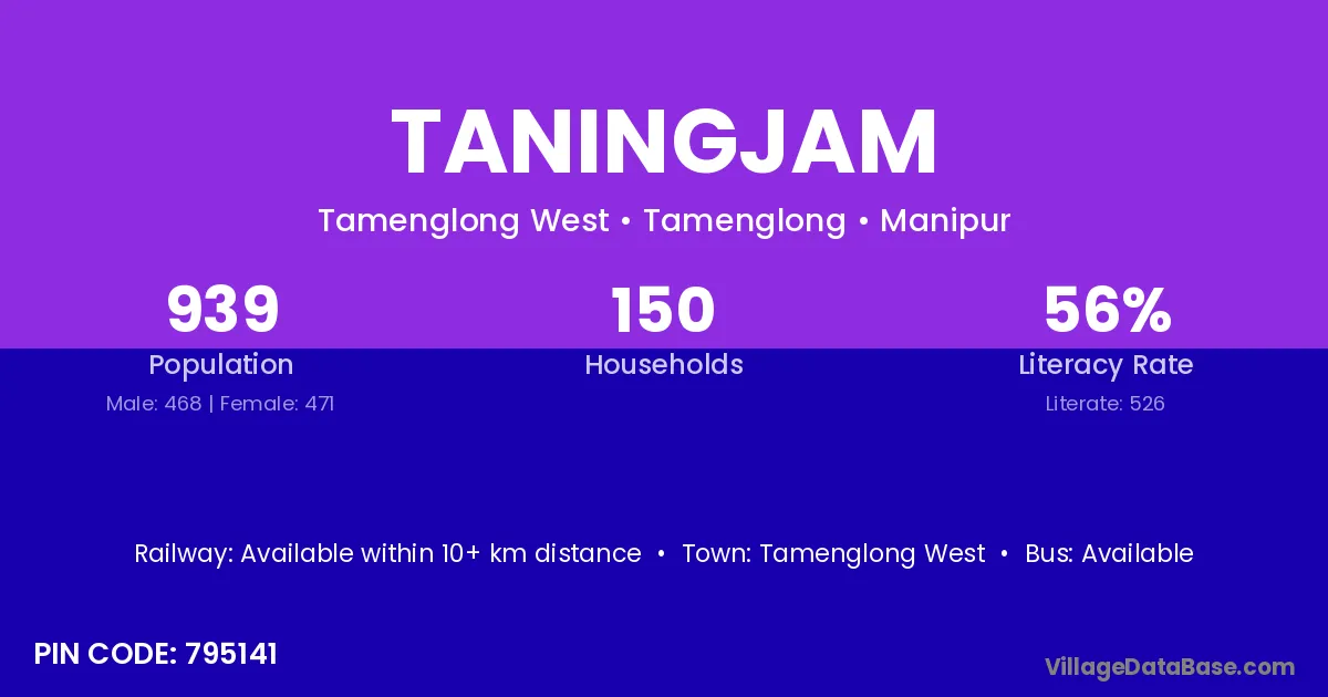 Tamenglong West is the nearest town to Taningjam village for major economic activities