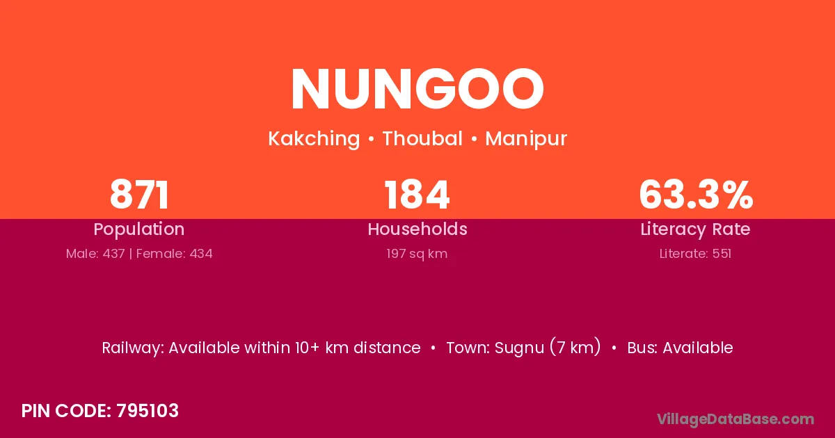 According to Census 2011 information, the village code of Nungoo village is 795103.