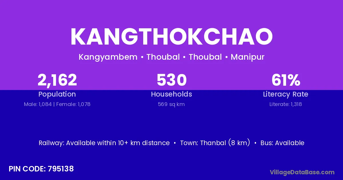 Thanbal (8 km) is the nearest town to Kangthokchao village for major economic activities and is located approximately 8 km away.