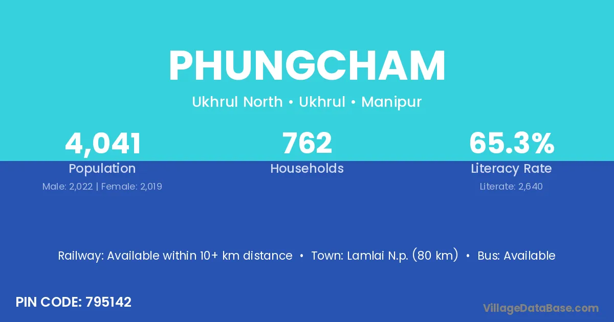 Lamlai N.p. (80 km) is the nearest town to Phungcham village for major economic activities and is located approximately 80 km away.