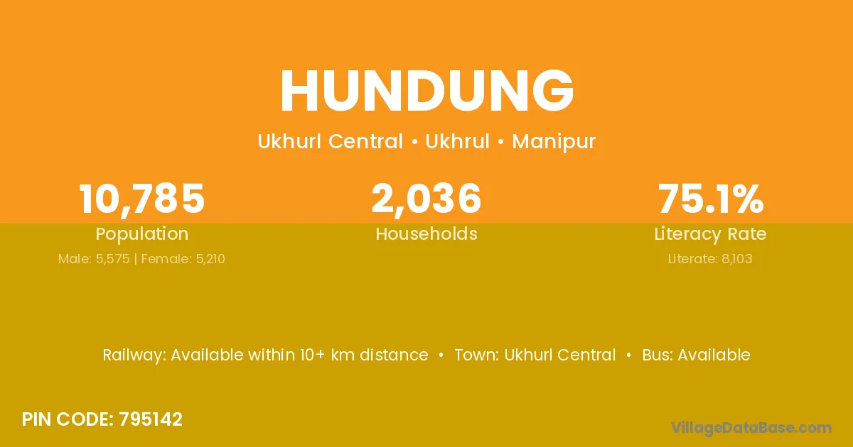 Ukhurl Central is the nearest town to Hundung village for major economic activities