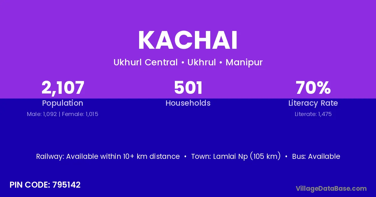 Lamlai Np (105 km) is the nearest town to Kachai village for major economic activities and is located approximately 105 km away.