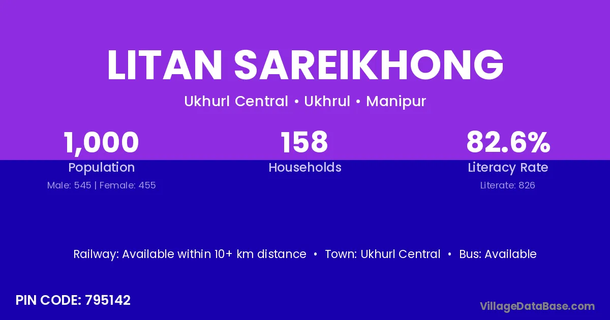 Litan Sareikhong village has a total population of 1,000 people, of which 545 are males and 455 are females.