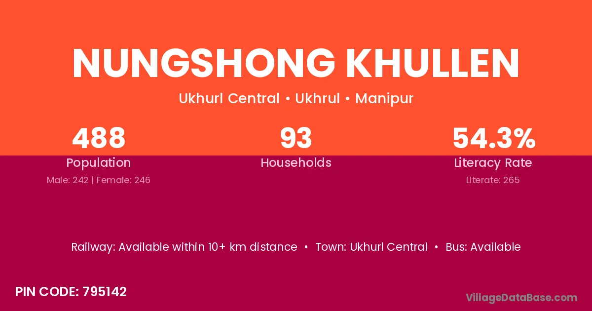 Nungshong Khullen village has a total population of 488 people, of which 242 are males and 246 are females.