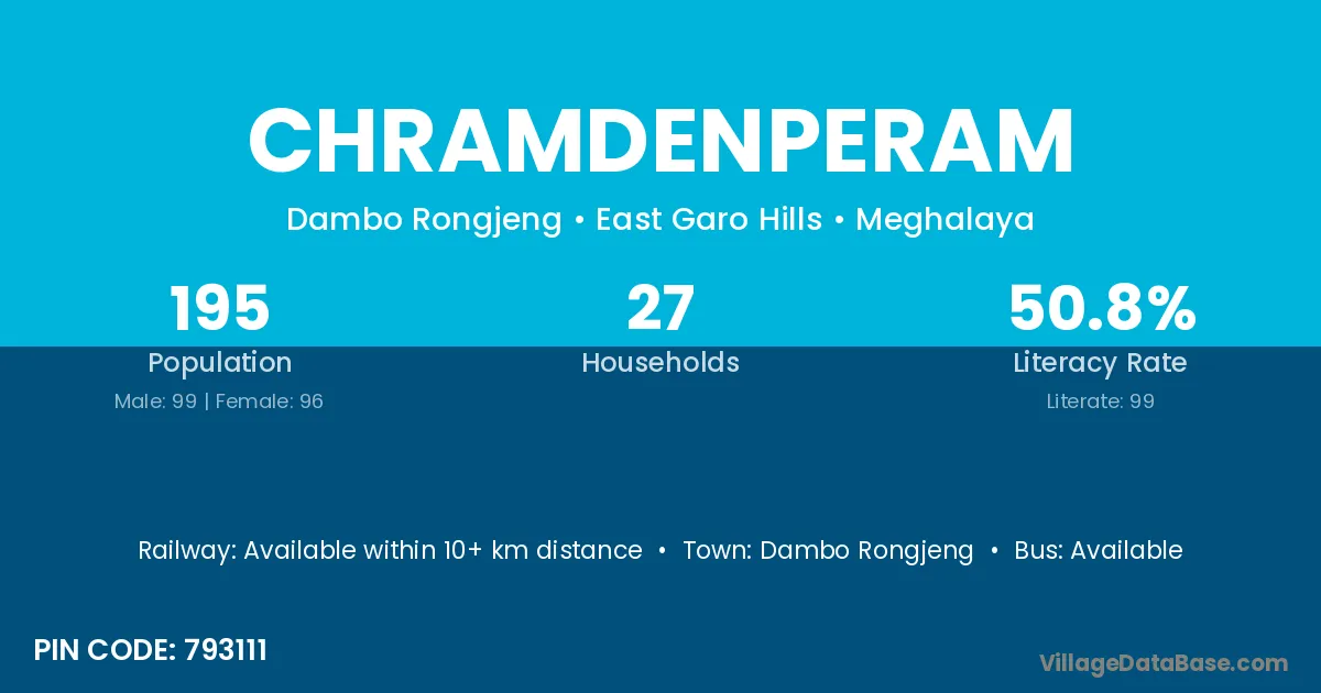 Chramdenperam village has a total population of 195 people, of which 99 are males and 96 are females.