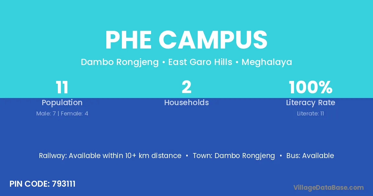 Phe Campus village has a total population of 11 people, of which 7 are males and 4 are females.