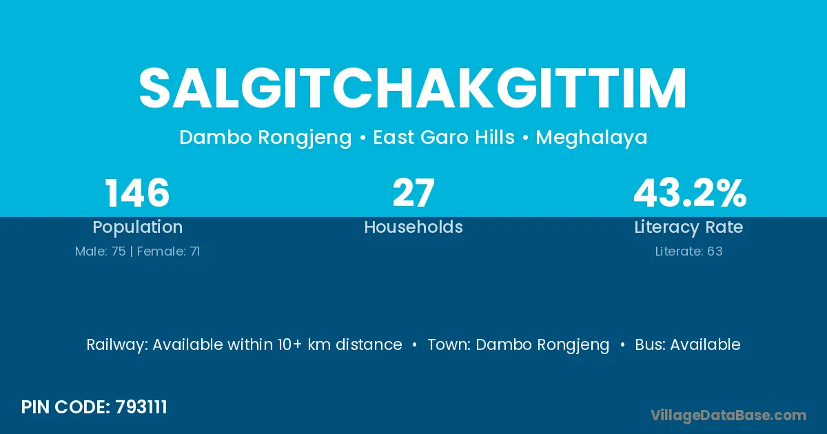 Dambo Rongjeng is the nearest town to Salgitchakgittim village for major economic activities