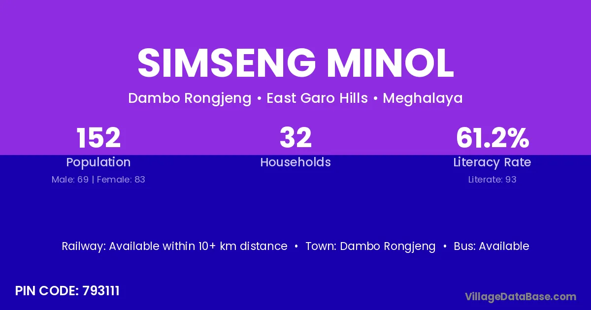 Dambo Rongjeng is the nearest town to Simseng Minol village for major economic activities