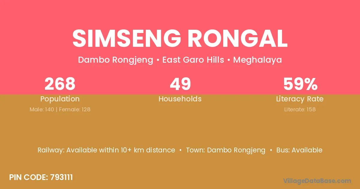 According to Census 2011 information, the village code of Simseng Rongal village is 793111.